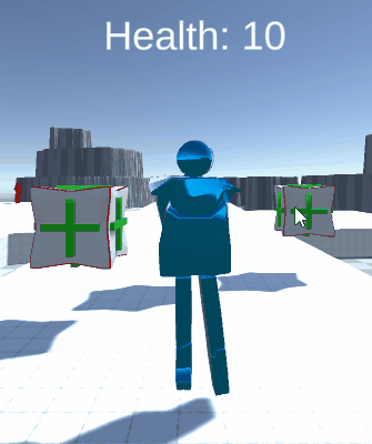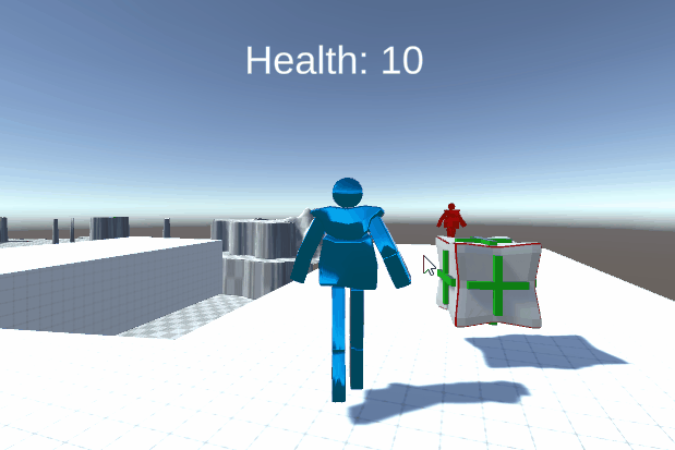 I have set up areas of the scene to give the player health in the form of health packs.